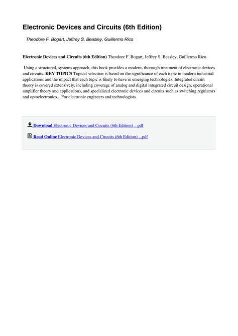 Download Electronic Devices Circuits 6th Edition Solution Manual PDF online is a convenient and frugal way to read Electronic Devices Circuits 6th Edition Solution Manual you love right from the comfort of your own home. Yes, there sites where you can get PDF "for free" but the ones listed below are clean from viruses and completely legal to use.